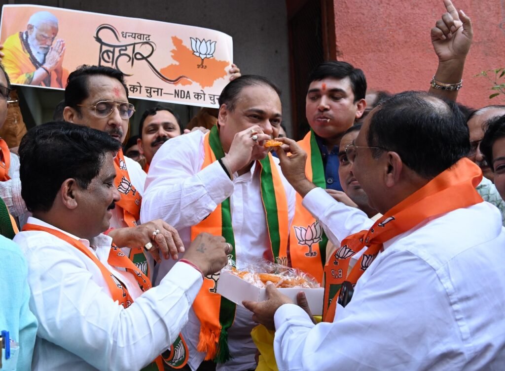 बिहार के विकास फिर रिपीट हो गयील!’ वही BJP मुंबई कार्यालय मे जश्न का माहौल बना हुवा है l चर्चा है कि इस प्रचंड जीत को सेलीब्रेट करने के लिए पीएम मोदी शाम 6 बजे भाजपा मुख्यालय जाएंगे। वहीं पूरे बिहार में भाजपा और जेडीयू के कार्यकर्ता जश्न में डूबे हुए हैं।