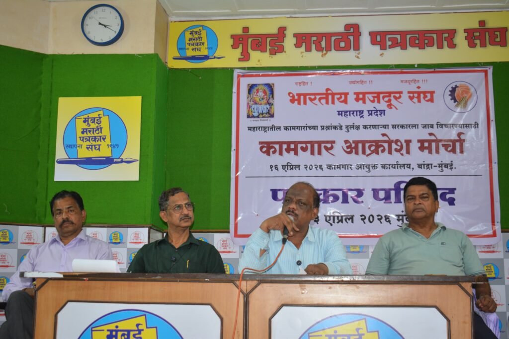 मुंबई: महाराष्ट्र में मज़दूरों के पेंडिंग और ज्वलंत मुद्दों को सरकार द्वारा नज़रअंदाज़ करने का आरोप लगाते हुए, भारतीय मज़दूर संघ, महाराष्ट्र प्रदेश, 16 अप्रैल, 2026 को एक प्रोटेस्ट मार्च निकालेगा। यह मार्च मुंबई के बांद्रा ईस्ट में लेबर कमिश्नर के ऑफिस तक जाएगा, और इसमें लगभग 5 हज़ार मज़दूर शामिल होंगे, यह जानकारी संगठन के स्टेट प्रेसिडेंट एडवोकेट अनिल डुमाने और जनरल सेक्रेटरी किरण मिलगीर ने एक प्रेस कॉन्फ्रेंस में दी।
